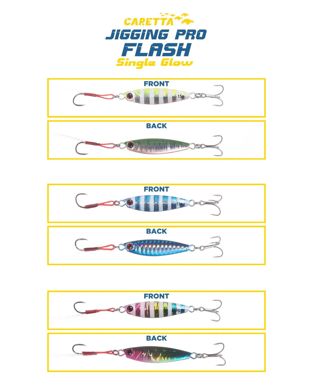 Caretta Jigging Pro Flash serisi, üç farklı renk varyasyonu ile üretilmiş olup, micro jig ve shore jig avlarınız için özel olarak tasarlanmıştır. Yavaş salınım aksiyonu sayesinde avlarınızın ilgisini en üst seviyeye çıkararak, vazgeçilmez bir yem haline gelmeyi hedefler.