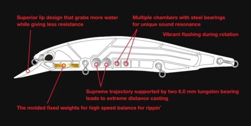 Ses Performansı:Kullanılan volfram bilyeler, hareket eden ağırlık olarak alçak perdeli bir ses yaratır, öte yandan çelik ve çıngırak bilyeleri yüksek perdeli bir ses iletir. Bu çift ses sistemi balıklara çok cazip gelmektedir.