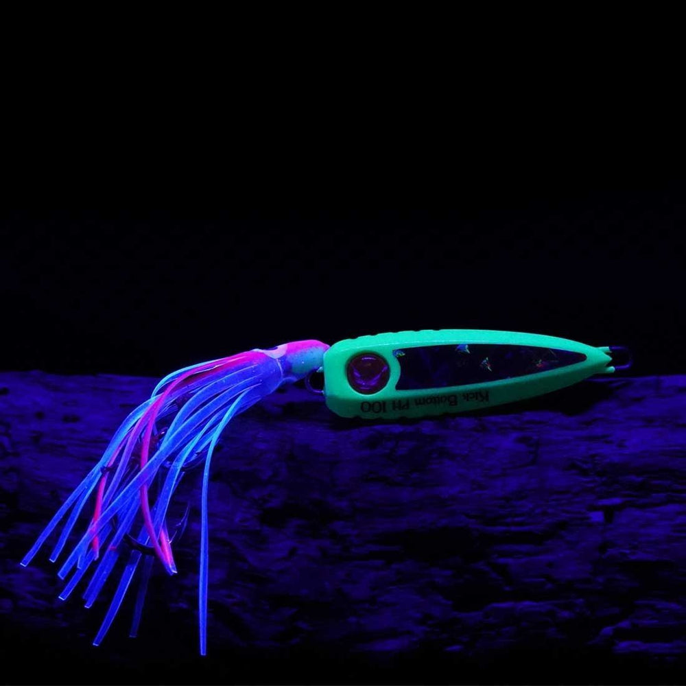 Hayabusa, Kick Bottom jiglerine, tüm mevcut ışığı yansıtan ve flaşlara neden olan şeffaf bir yaldız ile kaplanmıştır. Ahtapotun kafa kısmında GLOW bir boncuk eklemiş; böylece yakındaki yırtıcıların ilgisini çekmeyi amaçlıyor.