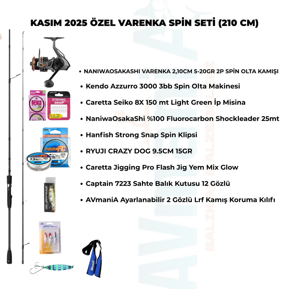 Kıyıdan hafif ve orta ağırlıklı spin avları için özel olarak hazırlanan Kasım 2025 Özel Varenka Spin Seti, maksimum denge, konfor ve performans arayan avcılar için tasarlandı. NaniwaOsakaShi Varenka kamışın hassas yapısı ve Kendo Azzurro 3000 makinenin pürüzsüz sarımıyla her atışta kontrol sizde olacak.