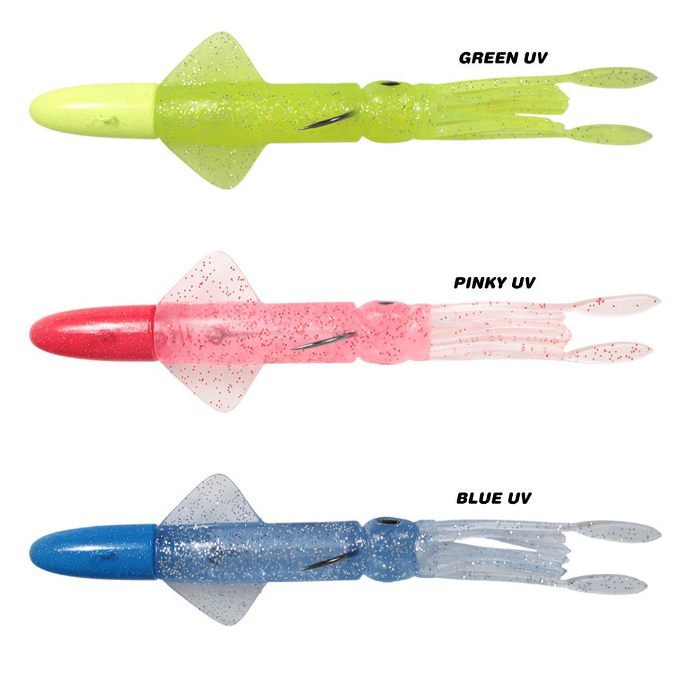 RYUJI CALAMARI 200GR Tekneden balık tutan olta balıkçıları için özel olarak tasarlanmıştır. 200 Gr toplam uzunluğu 25,5 cm dir. İsmindende anlaşılacağı gibi kalamar balığına benzeyen bu slikon yem ile 30 ile 250 mt arası derinlikte bulunan birçok balığı kandırabilirsiniz. Başta Lagos , Grida, Trança, Sinarit, Akya gibi balıklar için en etkili slikon yemlerden birtanesidir. Slow jigging veya heavy spinning takımlarla kullanabililirsiniz. Slikonu dibe indirdikten sonra 20 metre düz sarım yapın vuruş olmazsa tekrar indirip aynı aksiyonu tekrarlayın.