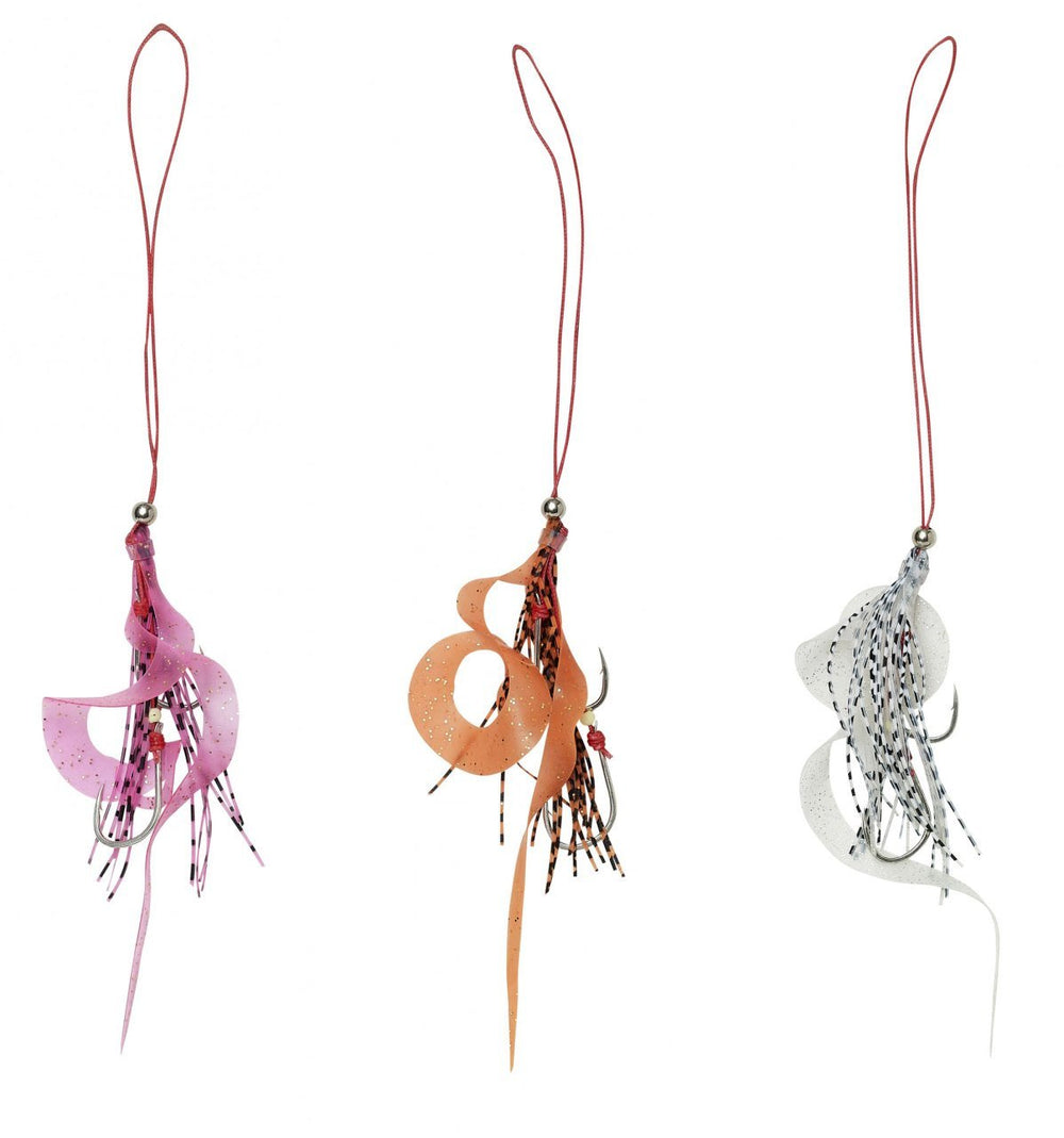 Silikon püsküller , kıvrılma kuyruğu ile mükemmel bir renk ve malzeme kombinasyonuna sahiptir, bu da mikro darbe titreşimleri üreterek geri çekilme ve dalma sırasında çalışmasını sağlar. Takım, florokarbon süper dayanıklı PE örgü misinaya bağlanır ve daha az dolaşma ve mükemmel bağlantı hızı sağlar.